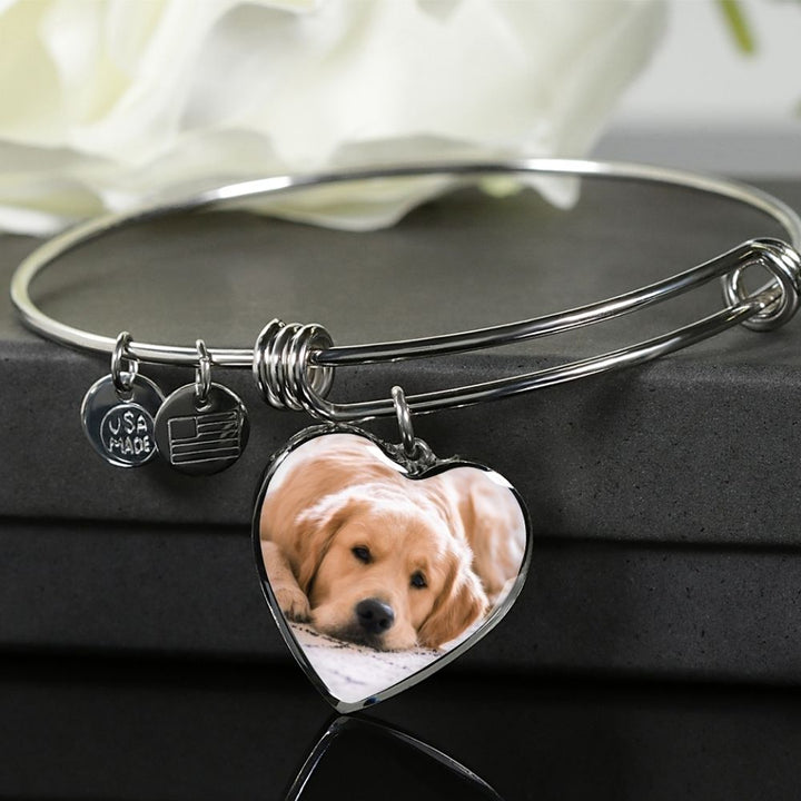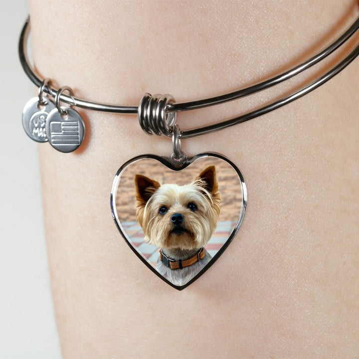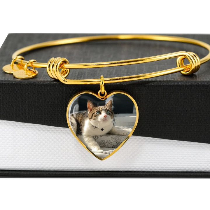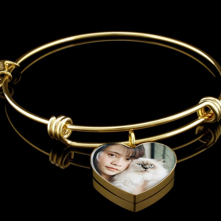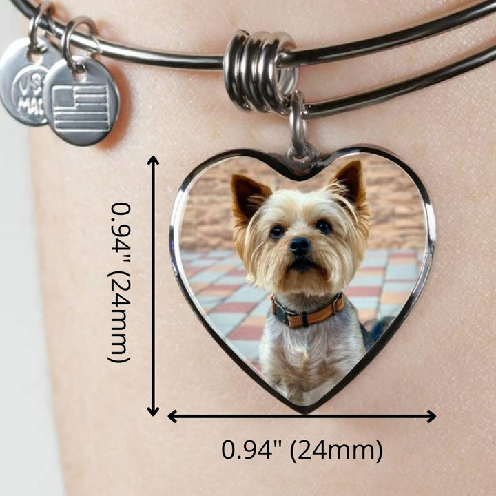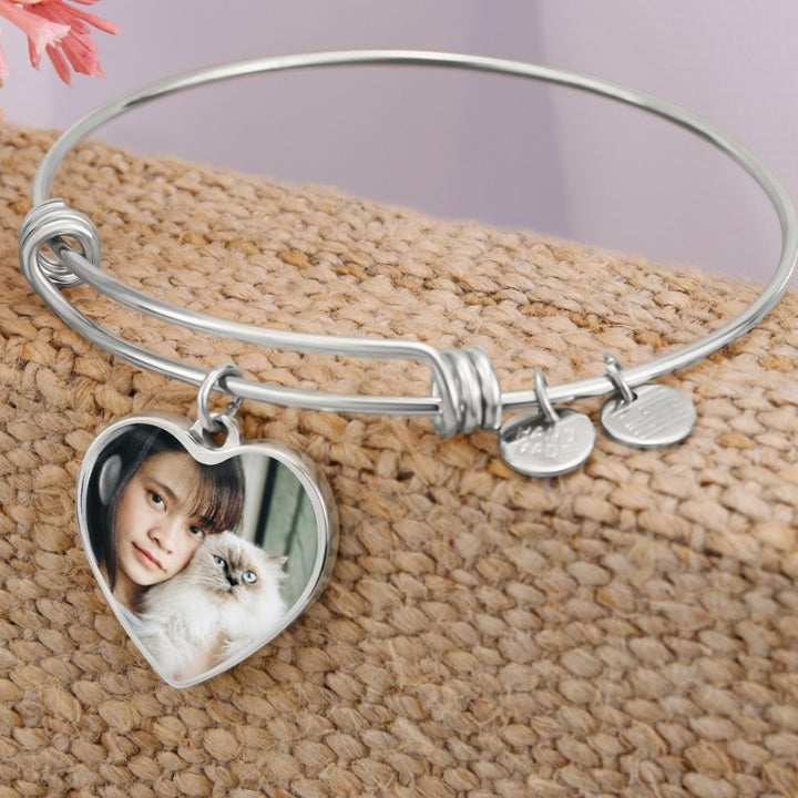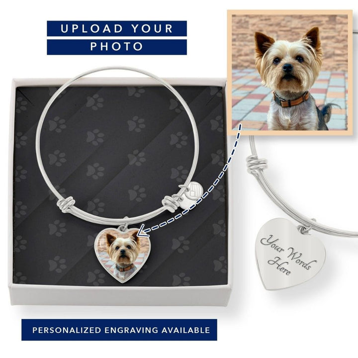 Whatever your pet, capture their image in this stunning heart pendant. Dog Mom Bangle, Custom Gift for Dog/Cat Mom, Keepsake Bangle for a Pet Lover, Pet Memorial Bangle.